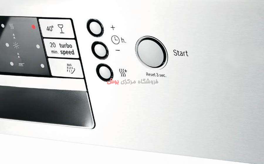 ظرفشویی بوش مدل sms88ti46 دارای ۸ برنامه شستشو، قفل کودک، نشانگر میزان نمک و جلادهنده، ۲ عدد فن خشک کن و کنترل لمسی است.